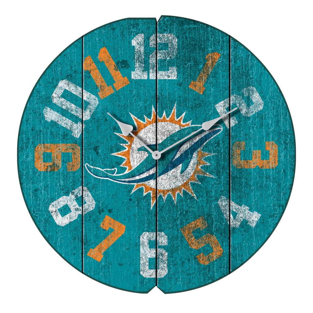 This NFL Officially Licensed vintage looking round wall clock highlights your favorite team’s color and logo in a way that this could become a favorite accent in any room of the house. Large numbers showcase secondary team colors. 16 inch diameter and durable craftsmanship makes this the perfect size for any room! Works with one AA Battery - keeping perfect time! Battery not included. Dimensions: 16” diameter x 2” deep; weighs 3.5 pounds.