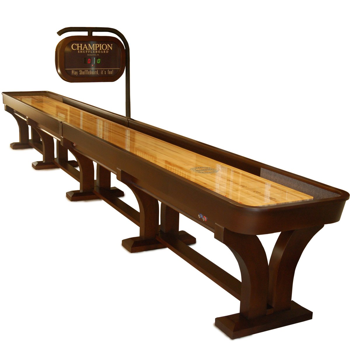 Not that Champion Shuffleboard cradles aren't beautifully crafted with premium woods and a wide selection of stains and finishes available. When you purchase a Champion Shuffleboard table it's the whole package: great to play, great to look at when you are not playing.