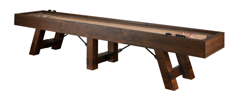 The Savannah Shuffleboard table features the elements of our best-selling pool table model molded into a spectacular, high-end shuffleboard experience. Although the design and style are enough to make this table desirable, the quality and construction of the game is paramount as well. By using heavy-duty maple playfields that are oversized at 20 inches wide by 3 inches high, we ensure fun family gameplay on a board that is meant to last.