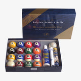 The Super Aramith Pro ball set includes Aramith's Pro cue ball with Red insignia. This ball set meets all professional quality specifications for density, balance, diameter, roundness, color, gloss, hardness and weight. Aramith Belgian balls also have outstanding endurance through a hardened vitrified surface with an ultra-high density for exceptional scratch and impact resistance.
