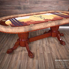 The Rockwell features solid oak pedestal legs and 5in racetrack, finished in a mahogany gloss. The 5in armrests are wrapped in premium sponge and heavy duty, premium leather vinyl. The playing surface is removable and easily upgradable for anyone with a staple gun.