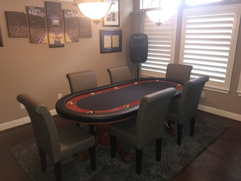 Looking for a classic and timeless poker table? Allow us to present, The Rockwell. Like the right bottle of wine or perfect pour of scotch, the Rockwell offers a welcomed and familiar vehicle for the perfect poker evening. Pair it with a matching dining top, and it’s the perfect Trojan Horse to sneak a high end poker table into your dining room!