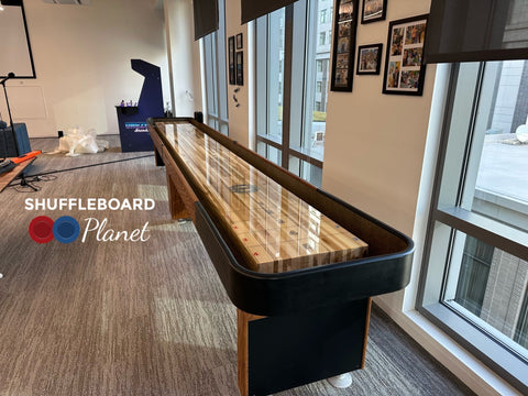 Champion Shuffleboard revolutionized the industry in 1988 by developing the original "Lifetime Polymer" finish. This coating is applied directly over the Canadian Maple plank to provide a fantastic playing surface that NEVER requires re-finishing.