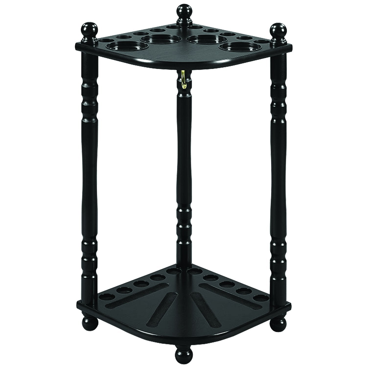Spindle-style legs create a traditional flair for this solid wood floor pool cue rack in a rich black finish.