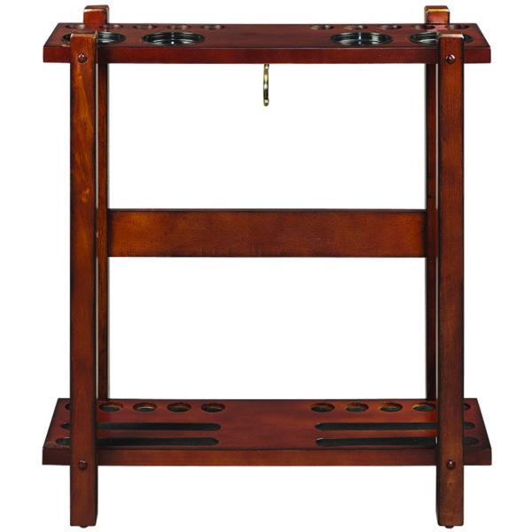 Crafted in solid wood with a classic chestnut finish, this floor pool cue rack is a fantastic way to add stylish storage and organization to your game room.