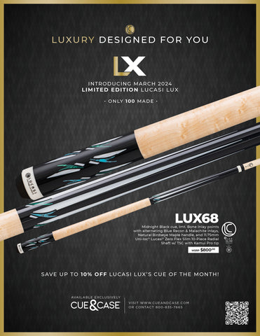 Lucasi® was Cue & Cases’ first cue brand, and 20+ years later it’s still going strong. Founder Jim Lucas created Lucasi® as a line of cues affordable enough for non-professional players, but high quality enough to last for generations, and that is precisely what Lucasi Custom® continues to bring. Some of our oldest cues have now become well loved by multiple generations, and we continue to produce great quality cues with traditional styling year after year.