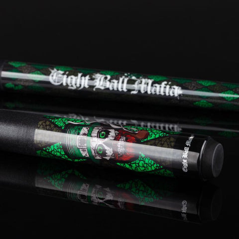 Behold the Emerald Enchanter, a cue fit for the lucky and the bold. Its green checkered pattern is a nod to the rolling hills of Ireland, and the white Eight Ball Mafia logo on the forearm signals that this is a cue not to be trifled with.