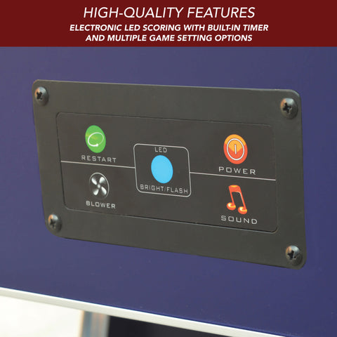 - Electronic LED scoring with built-in timer and multiple game setting options; (4) AA batteries required (not included)