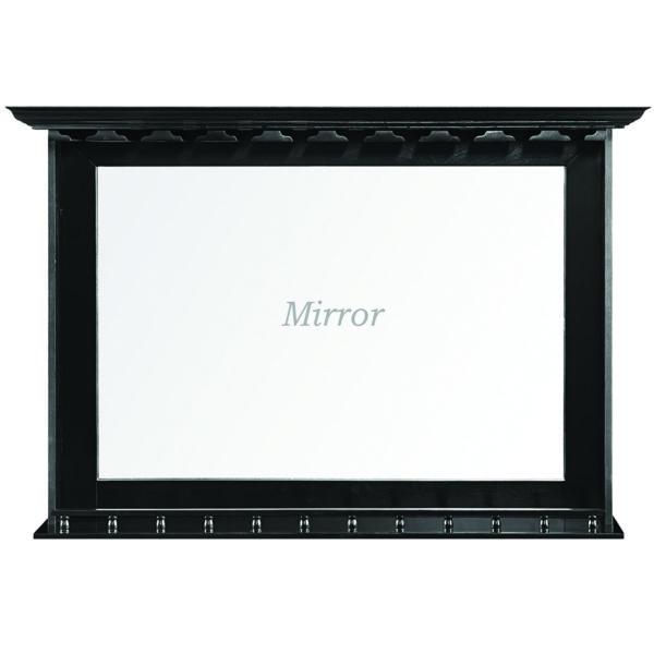 Add style behind the bar with the black finish bar mirror with a glassware rack across its top.