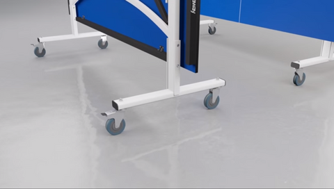 - EASY STORAGE - Each ping pong table half folds for compact storage. The double locking mechanisms holds the table safely in the storage position, while rotating wheels easily allows transportation to your storage area.