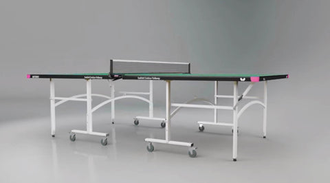 The Butterfly Easifold Indoor/Outdoor Rollaway table tennis table is the ideal choice for those looking for an excellent table at an affordable price. It requires minimal assembly time and has a 3-year warranty, providing countless hours of fun without the hassle. The 5mm Melamine top provides a quality bounce and keeps the table lighter, making it easier to move around the yard. A perfectly level playing surface is guaranteed with height adjusters on each leg. The extra strong top incorporates a special coating of DuPont paint which protects it from adverse weather conditions and is virtually unbreakable. Further protection is provided by a strong steel rail and attractive magenta corner pieces that perfectly accentuate the vibrant blue or green top color.