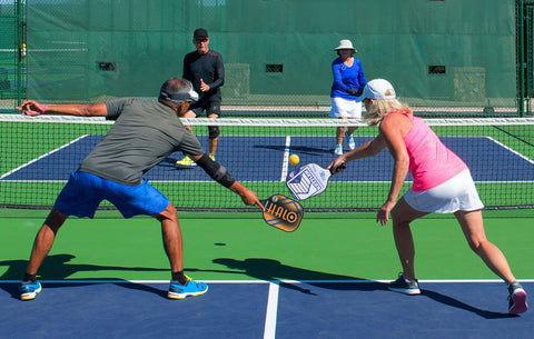 The HALO® Pickleball paddles use a carbon fiber face which make for a great option when players looking for fewer mishits and can help provide a truer shot. Fiberglass is a lightweight, strong, and durable material that are known for their versatility, as they provide a balance of power, control, and touch. One of the benefits of using a fiberglass paddle is its ability to provide a good combination of power and control. Fiberglass paddles are often designed with a slightly softer surface, which can provide more touch and feel on shots, making it easier for players to place the ball accurately.