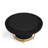 The table's sleek design, reminiscent of the opulent Art Deco era, adds a touch of timeless sophistication to any game room. Featuring a customizable playing surface, players can tailor their gaming experience to their preferences, ensuring hours of entertainment in impeccable style. This exquisite table combines classic sophistication with modern functionality, featuring a cladded matte black wood base accented by a vintage brass kick plate or light walnut with matte black accents, for a touch of timeless elegance.