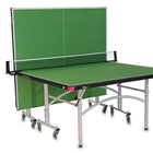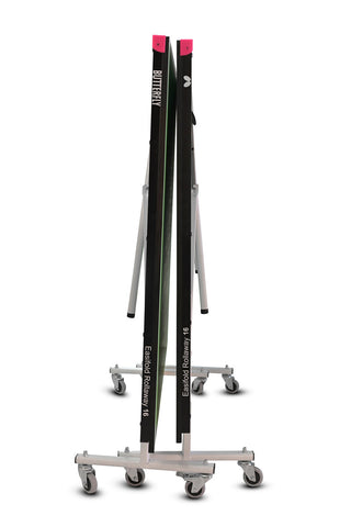 The Butterfly Easifold 16 table tennis table is a great choice for those looking for a home table at an affordable price. The Butterfly Easifold 16 is foldable, rollaway table that requires minimal assembly time; countless hours of fun without the hassle. The 16mm top provides a good bounce and playability and is available in vibrant color of green. It is protected by a strong steel frame and attractive magenta corner pieces that perfectly accentuate the top color, and a level playing surface is guaranteed with height adjusters on each leg. The Butterfly Easifold 16 table divides into two equal halves, each half consisting of 2 legs that fold into the top for easy movement and storage. Each half has four independent wheels, one of which has a brake to secure the table during play or storage. A double locking mechanism prevents the table from opening or closing accidentally. Another popular attribute of the Easifold 16 table is the playback feature where one half can be set in the storage position, providing the opportunity for extra practice when a partner is not available. A Butterfly clip net and post set is provided, which includes a rubber cover on the clamp to avoid damage to the center corners of the table. The Easifold 16 is a great choice for a home ping pong table as a birthday or Christmas gift.