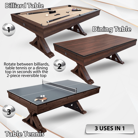 The Rockford comes complete with 7' Pool Table, Dining/Tennis Top and Table Tennis accessories.