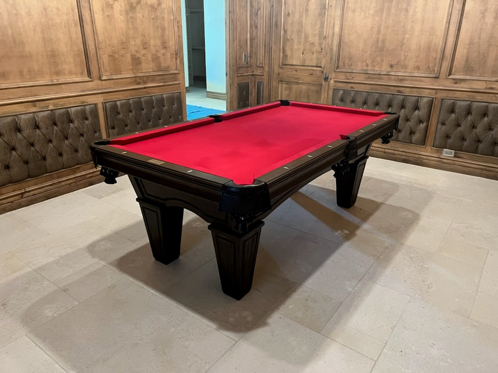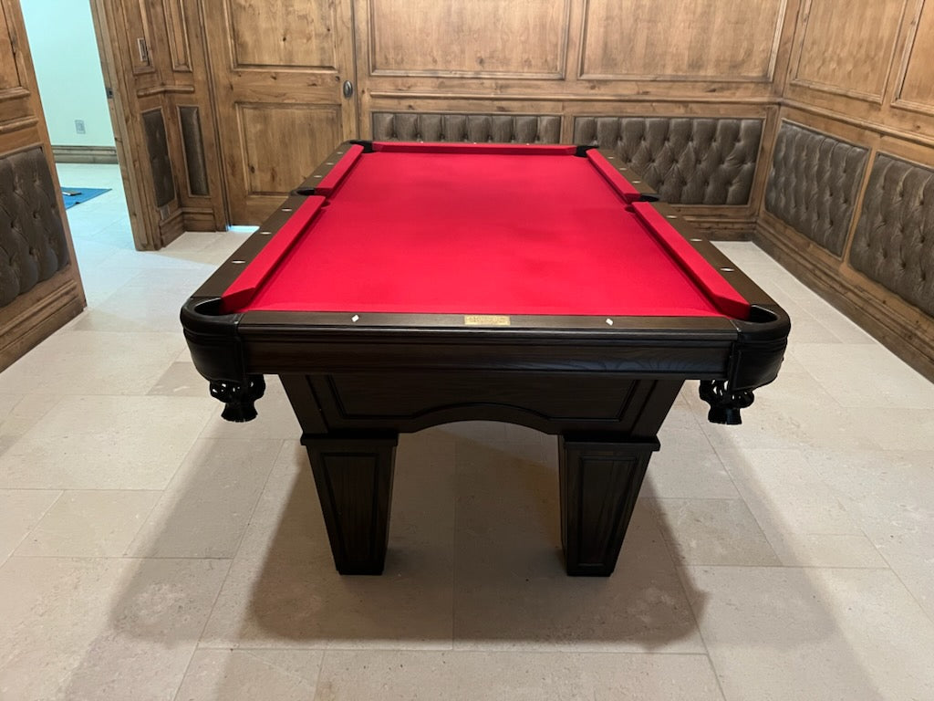 The American Heritage Austin Pool Table offers excellent playability while its’ astonishing design, exceptional tailoring and finish projects panache and sophistication. The Austin includes 1" certified slate and teflon-coated felt for tournament-quality pool table play.