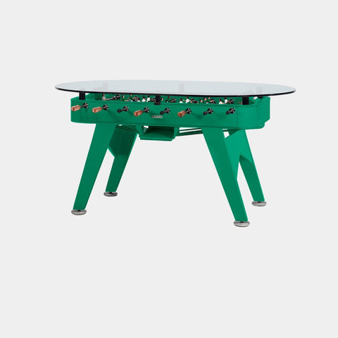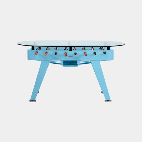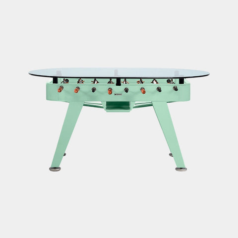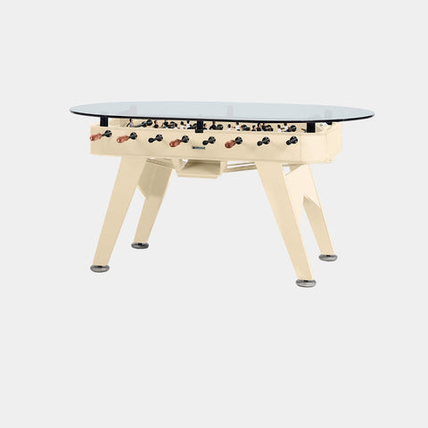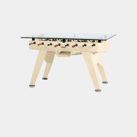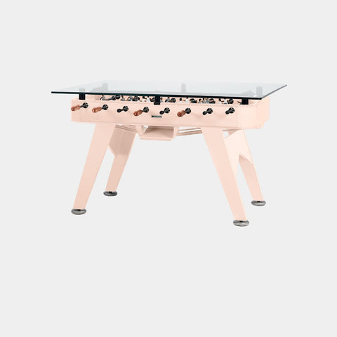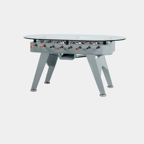 The concept is as simple as it is original. RS Barcelona placed a glass top over its classic RS2 so it can be used as a dining table without interrupting the game—though playing while seated is recommended!