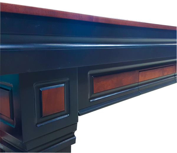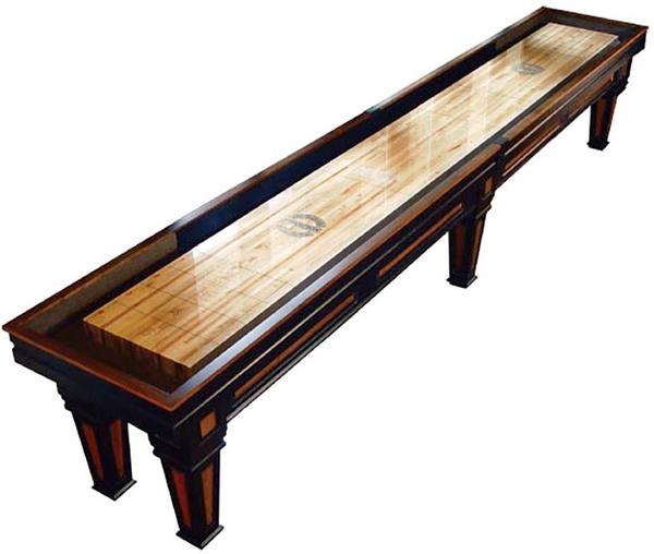 The Worthington shuffleboard table is in a class by itself. With hints of an Italian Gothic style the Worthington cabinet captures your attention with the richness of colors like aged black and deep cherry and the strong classical influence of Italy. The quality and craftsmanship endures over time and this sense of style gains character with age and use. The playfield remains the cornerstone of any Champion Shuffleboard table with a polymer playing surface that never needs refinishing.