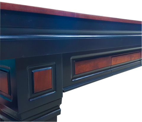 The Worthington shuffleboard table is in a class by itself. With hints of an Italian Gothic style the Worthington cabinet captures your attention with the richness of colors like aged black and deep cherry and the strong classical influence of Italy. The quality and craftsmanship endures over time and this sense of style gains character with age and use. The playfield remains the cornerstone of any Champion Shuffleboard table with a polymer playing surface that never needs refinishing.
