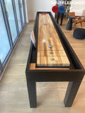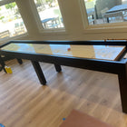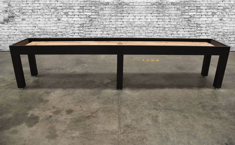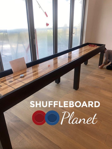 - 16" wide, 1-3/4" thick playing surface, coated with Venture Shuffleboard's exclusive hard clear synthetic lacquer