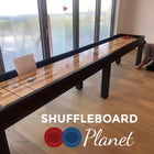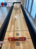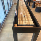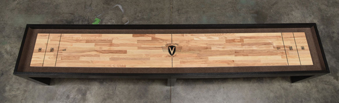 - 16" wide, 1-3/4" thick playing surface, coated with Venture Shuffleboard's exclusive hard clear synthetic lacquer