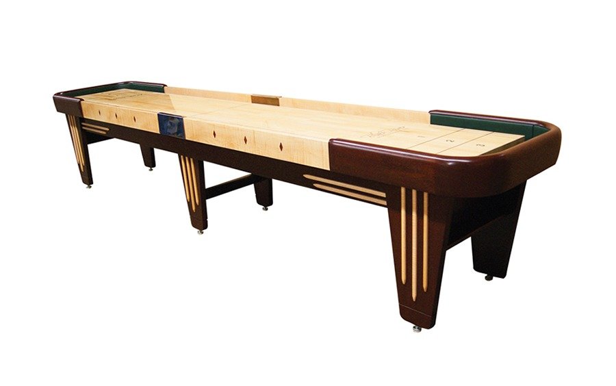 The Chicago Shuffleboard Table was designed by lead artisan, Chris to be styled after the numerous ground up restoration projects involving shuffleboards built in the mid-late 40’s by a small manufacturer based in Chicago, IL. The time spent restoring those antique pieces from near ruin (or ruin in most cases) gave way to the sense of honoring that age and those tables with a stand out design that recognizes the details and enhances them with the newest techniques in finishing and fastening. What more fitting a name than the city where they were originally built, Chicago.