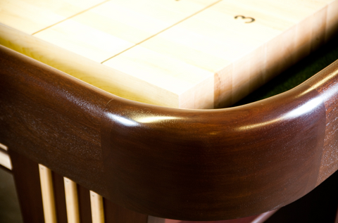 The attention to detail are abound in the Chicago Shuffleboard Table. From the exclusive tear drop bows to the 8/4 solid hardwood legs, every detail of the Chicago has been painstakingly reviewed, mulled, and defined. Each Chicago is a Venture team build; this means, each aspect and each movement through the shop is reviewed and discussed with both the design and build leads at Venture to ensure the most beautiful, custom table each and every time. The Chicago is photographed in Mahogany Stain with clear maple details.