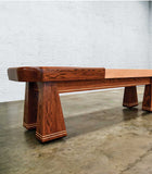 The Saratoga Shuffleboard Table features custom, solid Red Oak, tear drop horse collars, and 6/4 side rails with custom made Adirondack style legs that come together to create a masculine, rugged shuffleboard table. The horse collars are upholstered with rich toned leather to complement each wood stain. The Saratoga is photographed in Chestnut Stain on Red Oak wood with Curly Maple side rails.