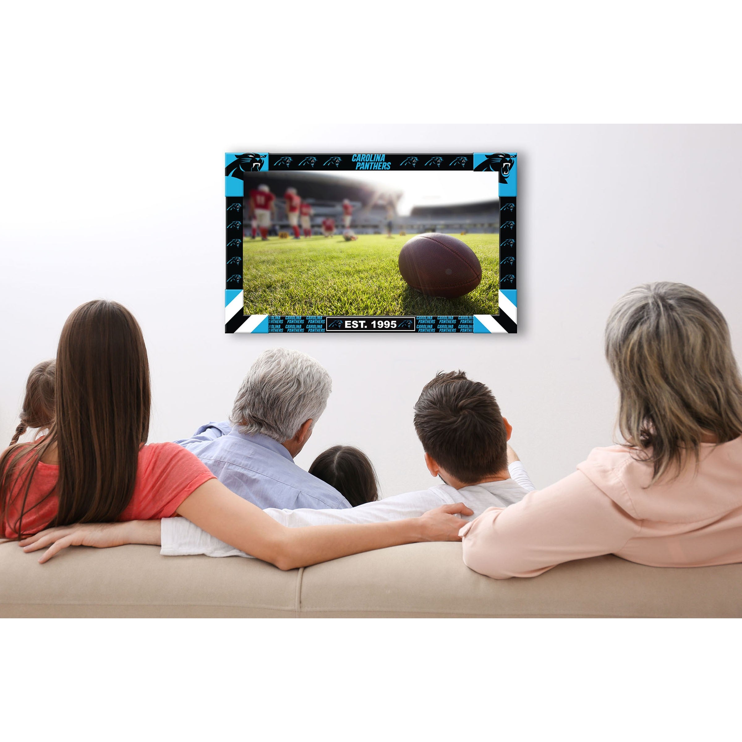 Let everyone know who you are rooting for with the NFL Officially Licensed Team Big Game TV Frame. Made of durable plastic and MDF, the patented design allows you to custom fit 40-inch to 50-inch TVs. The frame is easy to install and remove. Some assembly is required. Adjustable length.