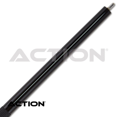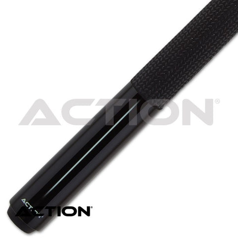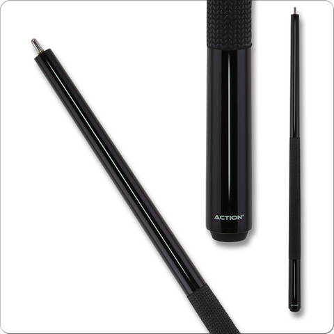 The Action ABK06 Break Cue - 25oz features a gloss black paint job, with a matching sleek white stripe and textured performance grip for a secure stroke and rock-solid break. The ABK06 comes standard with a 13.5mm Hard Maple shaft that uses the Inox Quick Release for a guaranteed close fit, and a phenolic tip with a grey pad for a crisp feel on the break.
