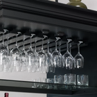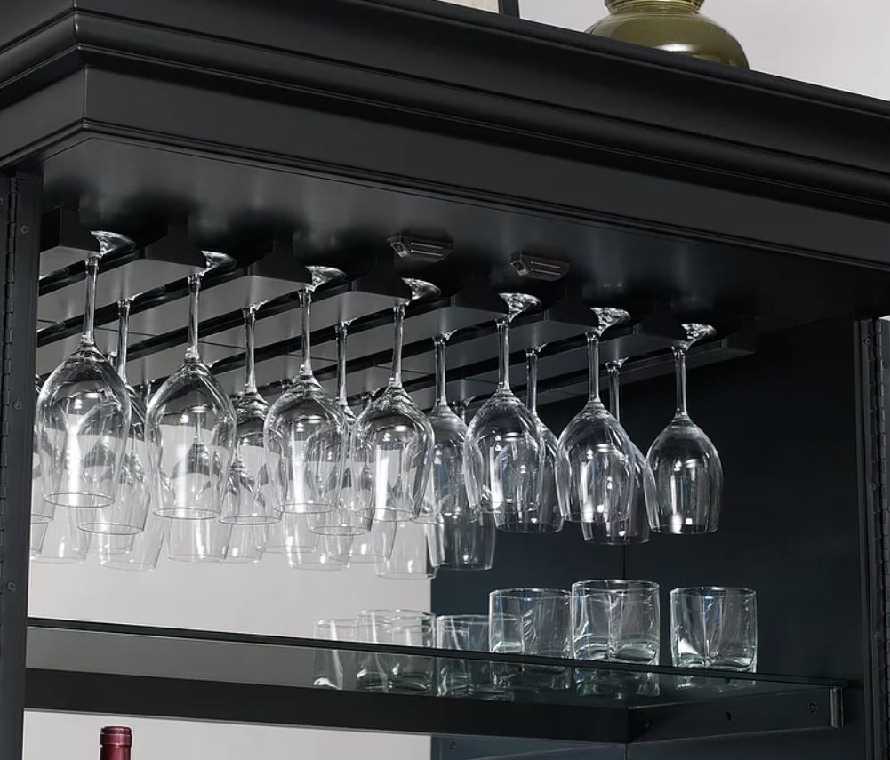 - Glass stemware holders line top of interior