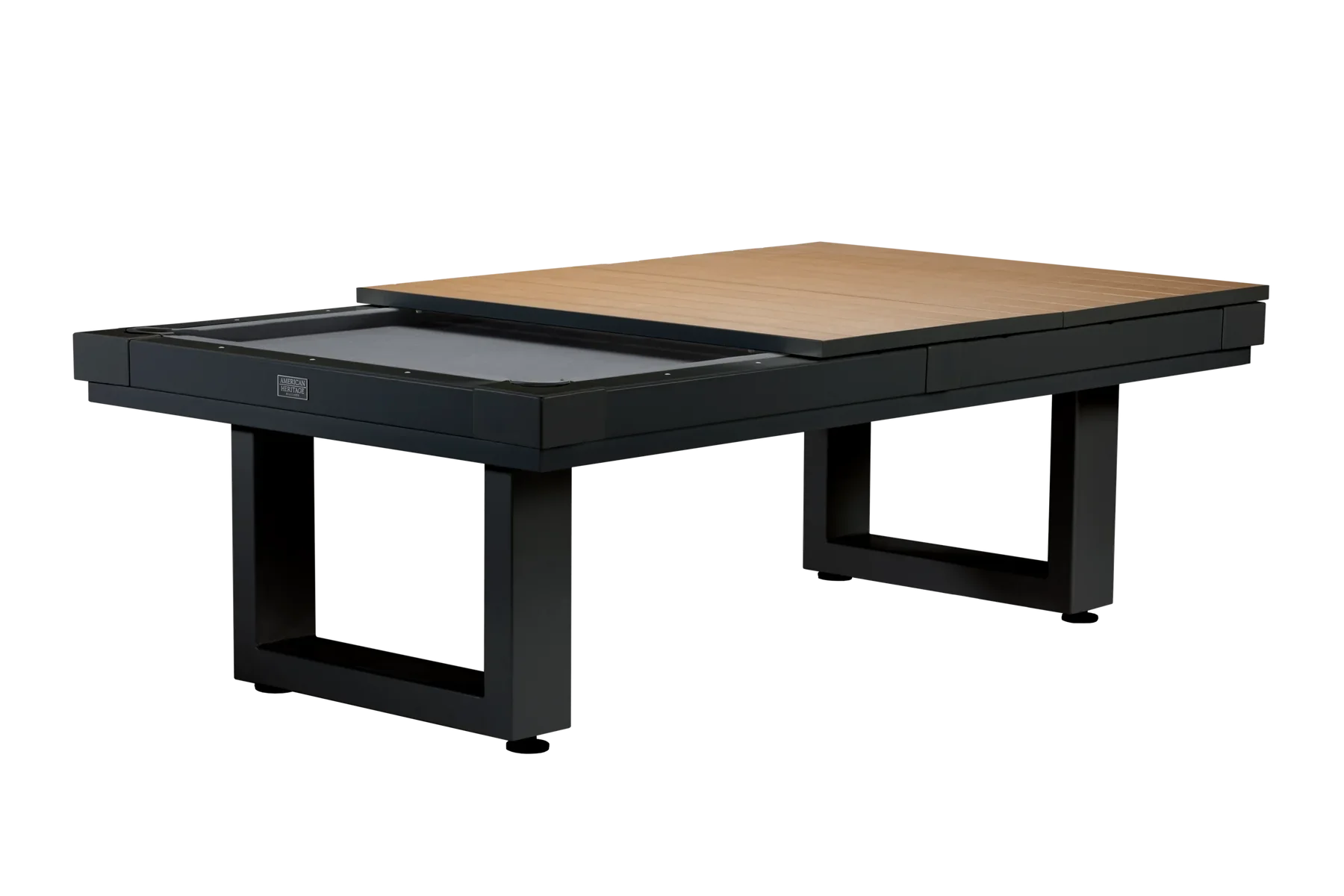 This dining top matches the American Heritage Billiards Lanai 8' Outdoor Slate Pool Table In Obsidian Black.