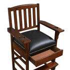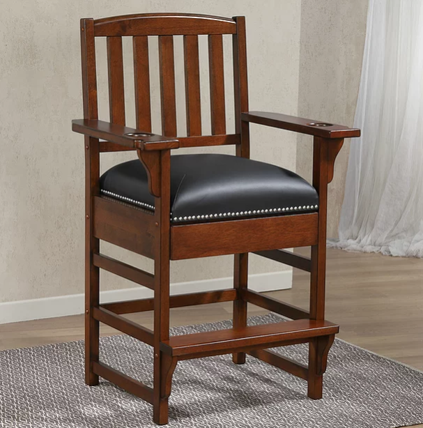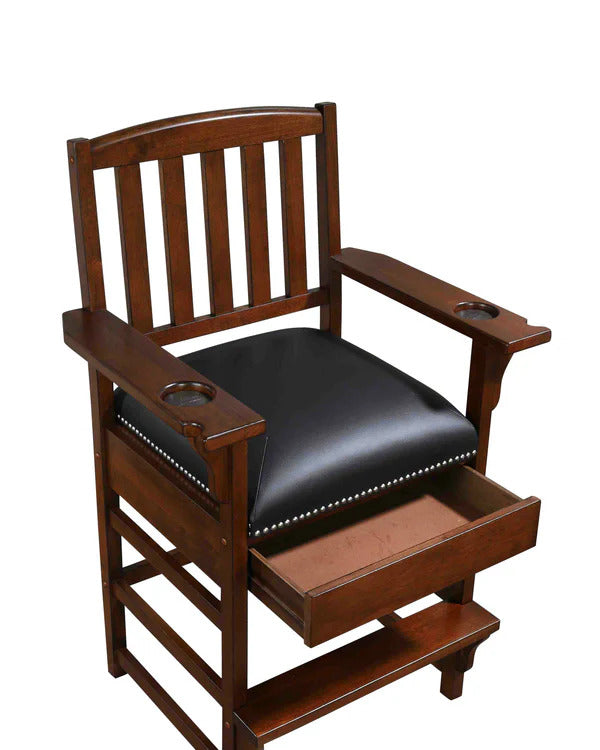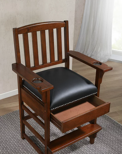 Crafted to reflect its name, keep your eyes on the action with this stately viewing chair. The King Chair touts a wide and slatted back, armrests complete with cup-holders and notches for billiard cues, and a hidden drawer for storage.