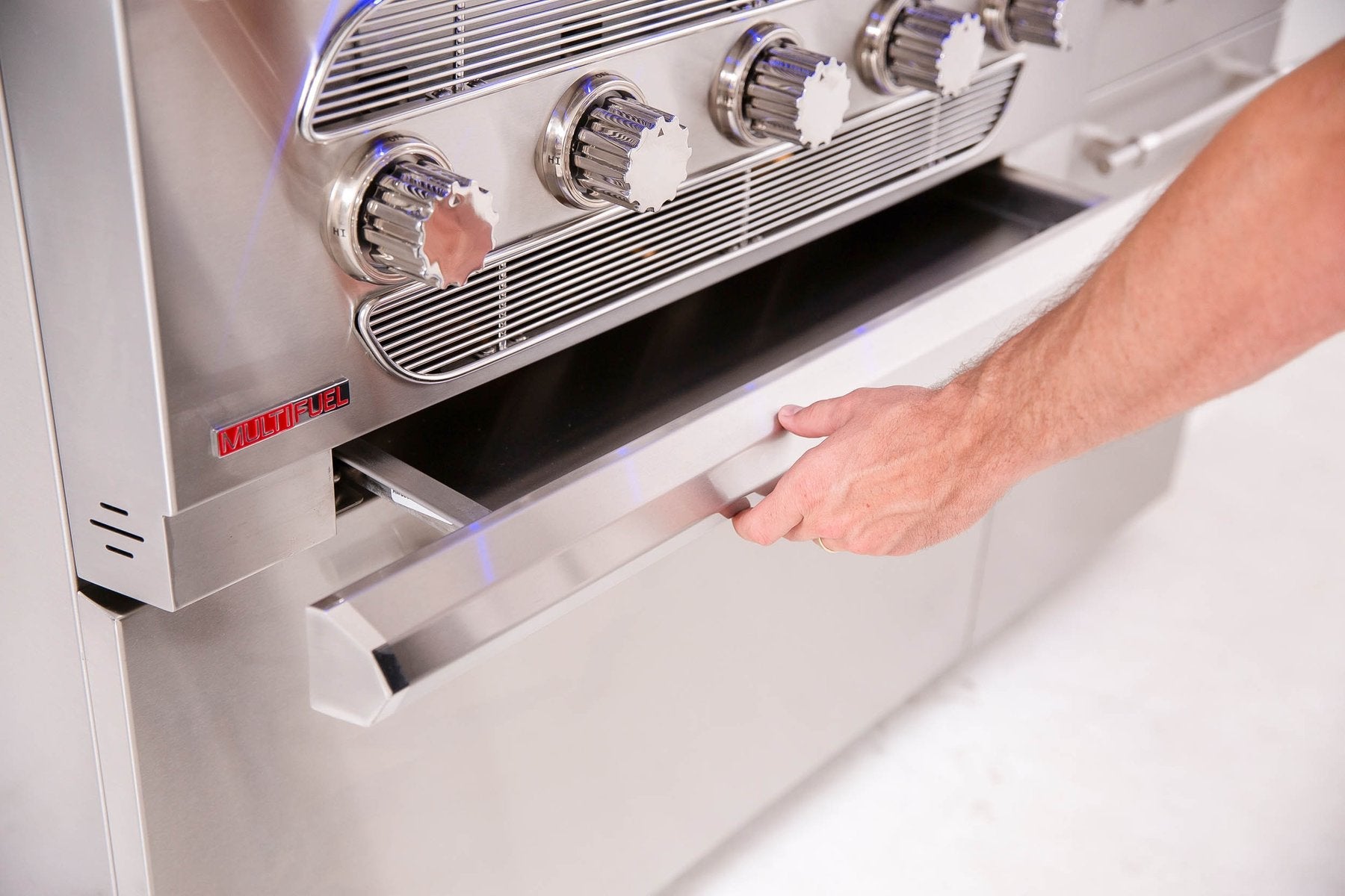 Charcoal, lump charcoal, wood chunks, natural gas, liquid propane, pellet fuels – all of it! With the American Muscle Grill, get the flexibility of a multi-fuel chameleon with the raw power of a champion that outclasses any of its single-fuel challengers. With its creative Multi-Fuel Tray System, grilling with any combination of solid fuels places innovation in the chef’s hands. Offering a robust 110,000 BTUs of grilling horsepower, take advantage of the convenience of gas or simply use it to ignite those solid fuels in seconds. The Muscle Grill is the top performer in any class, the only question left is how big: 36 or 54 inches?