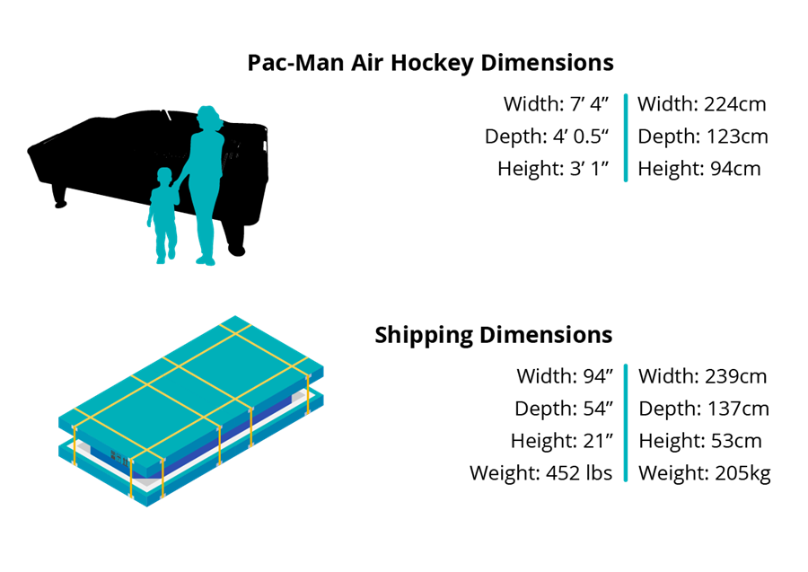 The PAC-MAN home Air Hockey brings all the fun of arcade air hockey to the home rec-room. Full motion LED lighting below the playfield makes a great attraction. They light up red or blue to let everyone know who has scored. PAC-MAN music and sound effects add to the fun. A must for every rec-room. It even makes a 'waka-waka' sound when puck hits the sides of the table. How cool is that?