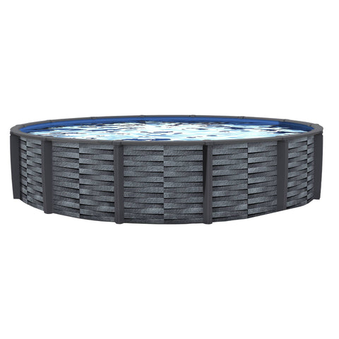 - 52-in steel pool wall with a modern, basket weave design in graphite