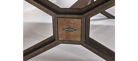Mixing solid hardwood, white oak veneer and employing steel legs, the durability and elegance of Brunswick Billiards Dameron 8' Slate Pool Table in Nutmeg makes for a decadent piece that can accommodate any recreation space. Every attention to detail was given from hand-hammered metal sights to the Brunswick name plate in the leg pedestal. Made to endure with beauty & grace.