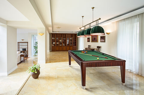 The Brunswick Billiards The Henderson 8' Slate Pool Table in Espresso offers the sleek look of a fine dining room table with the legendary playability of the Brunswick Billiards brand. A beautiful table in its own right, the Henderson offers the versatility to quickly change your game room to fit your needs. Simply use the optional dining top and transform your game room into a banquet room, a conference room, an arts & crafts room or leave it off and enjoy hours of play on this elegant model.