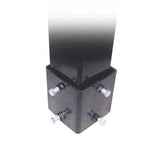 - Post secures inside sleeve via eight tension bolts