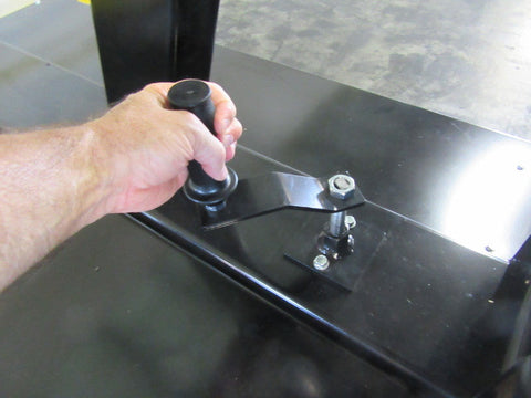 One person can easily move the Thunder portable basketball goal. An easy to grip release crank unlocks the brake and six roller wheels contact the playing surface for smooth portability. The extension arm can quickly drop down to allow the unit to pass under any standard height double doors.