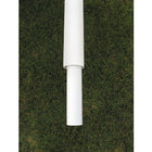 All World Class™ 40 soccer goals are manufactured to exacting standards for true, seamless fit throughout. The 4" round aluminum uprights and crossbar are powdercoated white for an aesthetic appeal. First Team's World Class net fastening system attaches net securely in place. Once in place, net clips will not come loose or get lost. No more velcro straps, welded hooks, screws or nylon ties. Unlike other manufacturers clips, World Class net fasteners will not become loose or cause misalignment of net. All World Class™ 40 permanent and semi-permanent goals include free 4' European Style backstays giving depth to the goal and net. Semi-Permanent packages include our exclusive ground sockets with chrome plated cover lids. And don't forget First Team always includes our heavy duty professional style hexagonal mesh net with every goal!