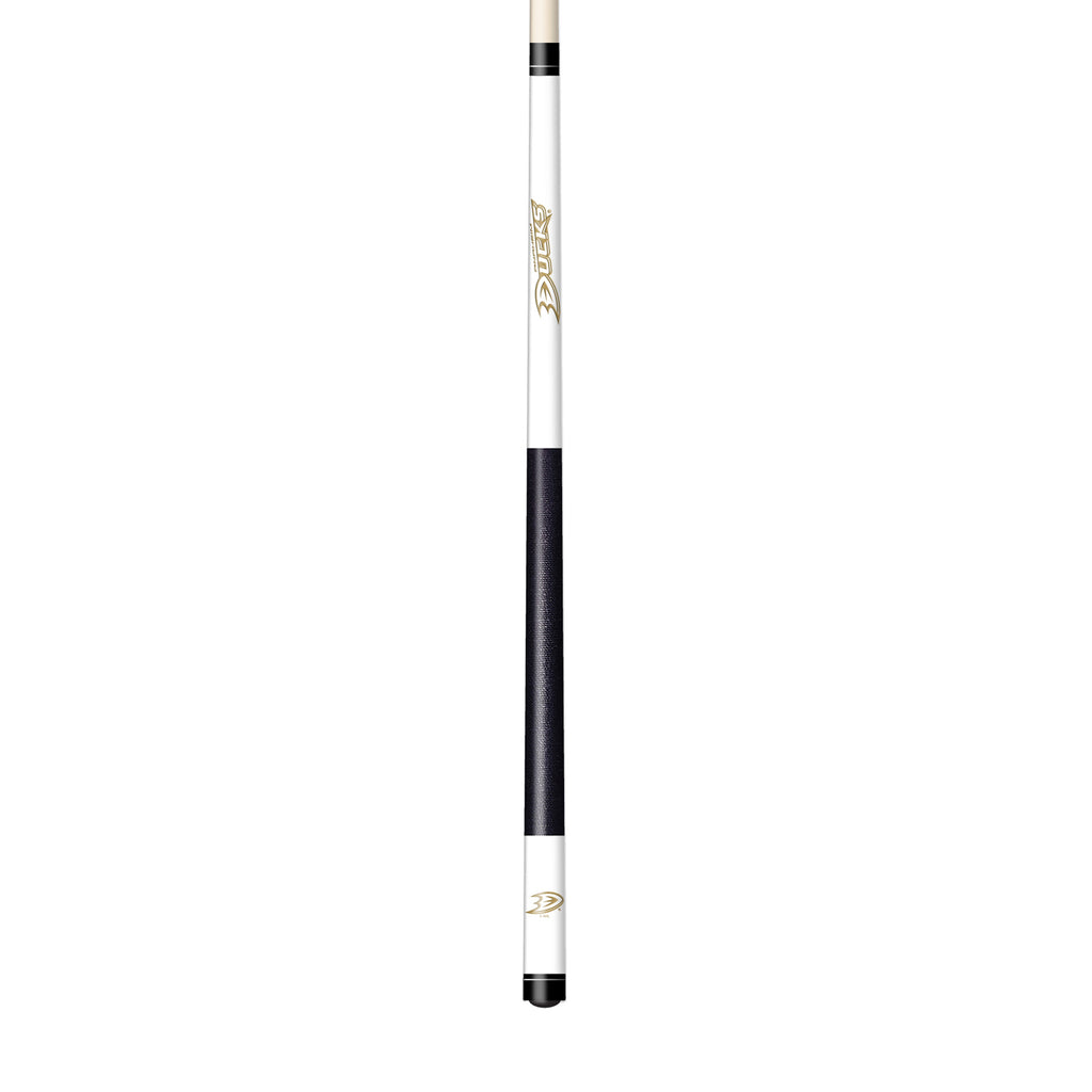 This Anaheim Ducks laser etched billiard cue features authentic Irish linen wrap and a high quality leather tip. Constructed of solid maple wood, this cue has an implex joint, decorative silver rings, and a laser-etched team logo to show your team spirit while you play. Product is officially licensed by the NHL.
