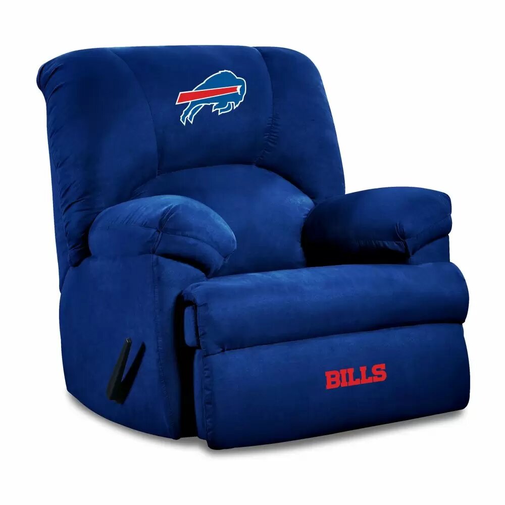 Watch the Big Game in complete comfort with the Buffalo Bills GM Recliner. Bring home-field advantage to any room of the house with durable, vibrant microfiber fabric decked out with an embroidered logo on the headrest and ottoman. Enjoy this rocker recliner, fit for the fan up to 6 feet tall. Kiln-dried hardwood and cross-banded plywood frame make this chair as sturdy as it is comfortable. The product is officially licensed by the NFL and is made in the USA.