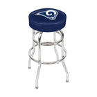 The Official Licensed NFL Team Bar Stool has the team logos printed on the underside of heavy-duty, clear vinyl to prevent it from scratching off. The base is commercial quality chrome plated tubular steel. The seat measures 4 inches thick with a 14.5-inch diameter and is 30 inches high and has a two-ring frame. Match it up with the Team Pub Table to complete your fan cave!