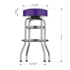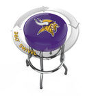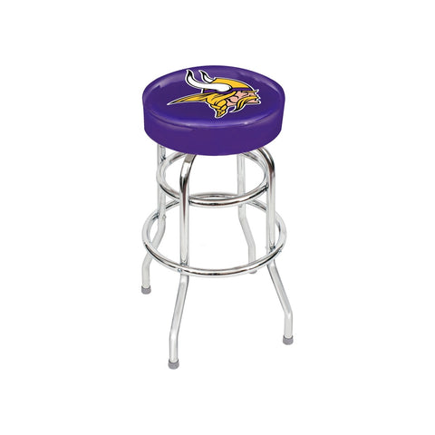The Official Licensed NFL Team Bar Stool has the team logos printed on the underside of heavy-duty, clear vinyl to prevent it from scratching off. The base is commercial quality chrome plated tubular steel. The seat measures 4 inches thick with a 14.5-inch diameter and is 30 inches high and has a two-ring frame. Match it up with the Team Pub Table to complete your fan cave!