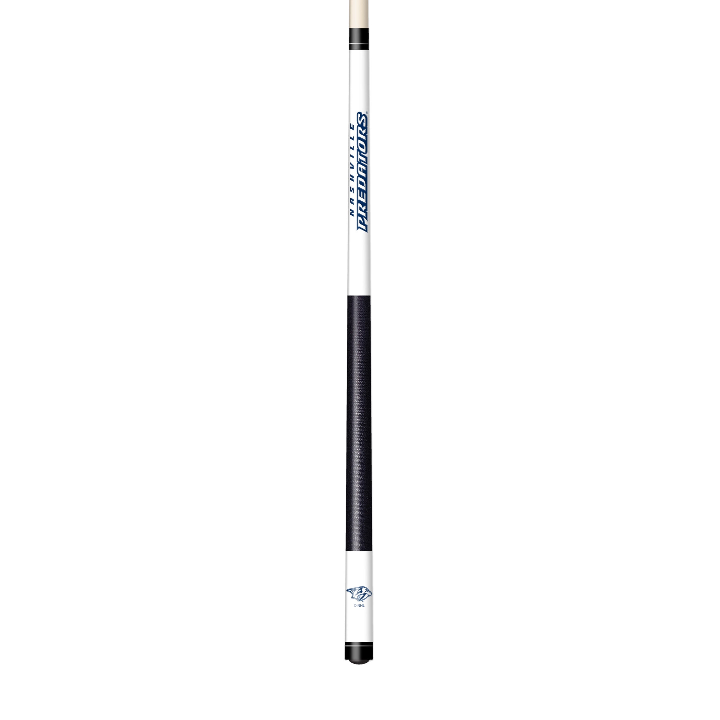 This Nashville Predators laser etched billiard cue features authentic Irish linen wrap and a high quality leather tip. Constructed of solid maple wood, this cue has an implex joint, decorative silver rings, and a laser-etched team logo to show your team spirit while you play. Product is officially licensed by the NHL.
