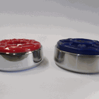 Set of eight shuffleboard weights - 4 Red & 4 Blue.