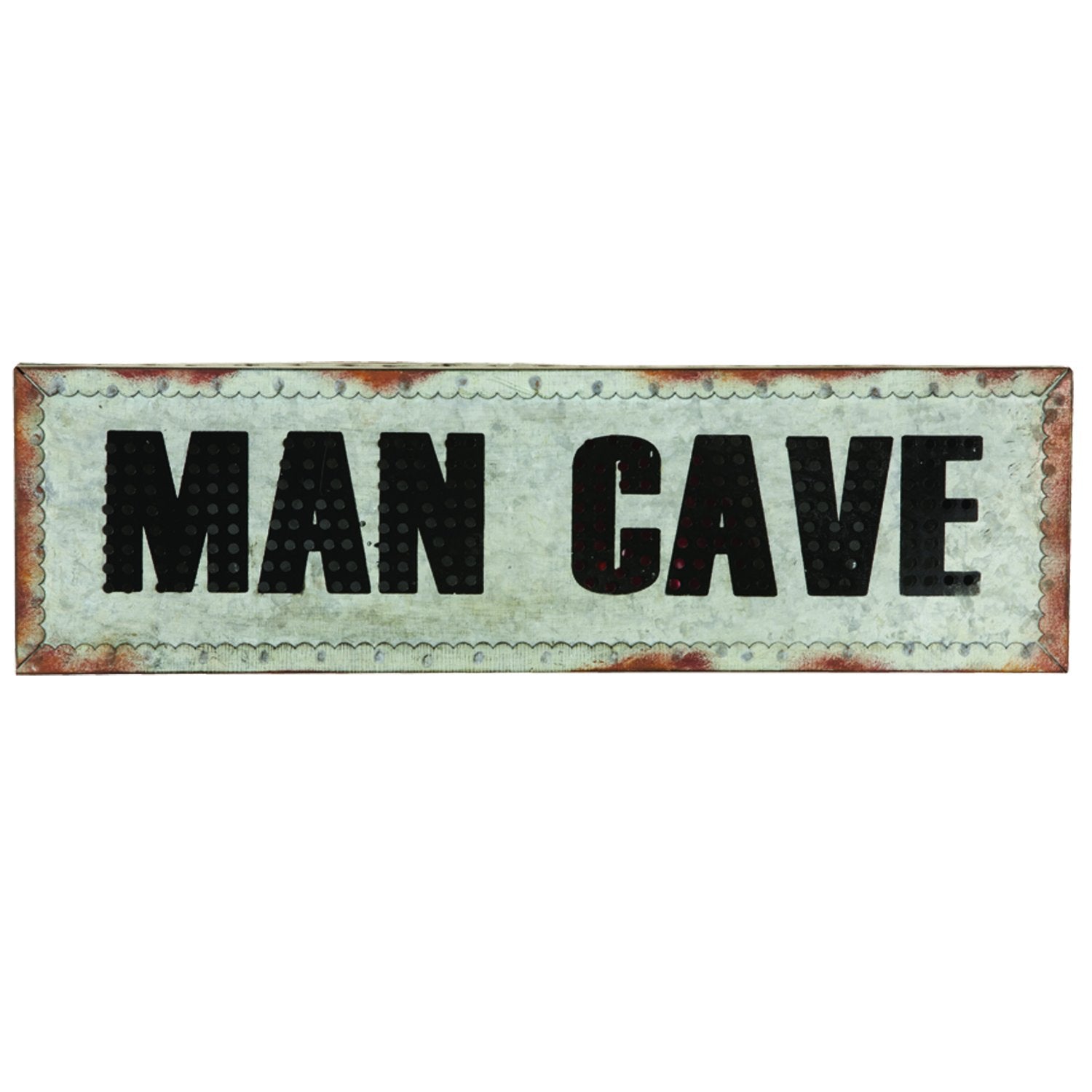 This rustic, hand-painted and illuminated small metal man-cave themed sign establishes rightful domain in a decked-out game room.