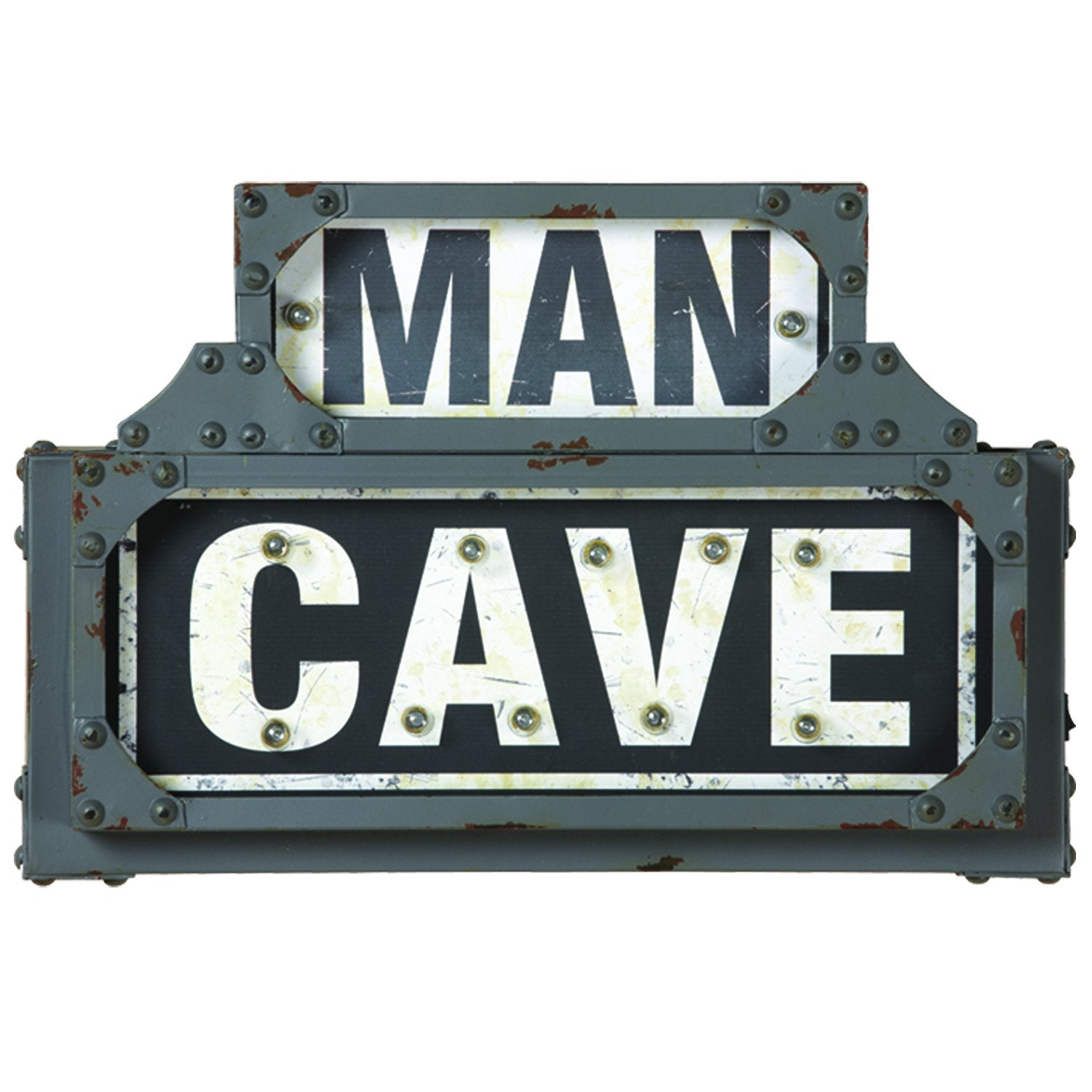 Lit up for emphasis, this cool metal man cave sign brings a keen reminder of territorial purpose in a game room.