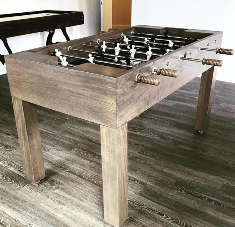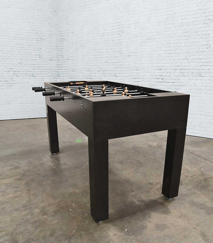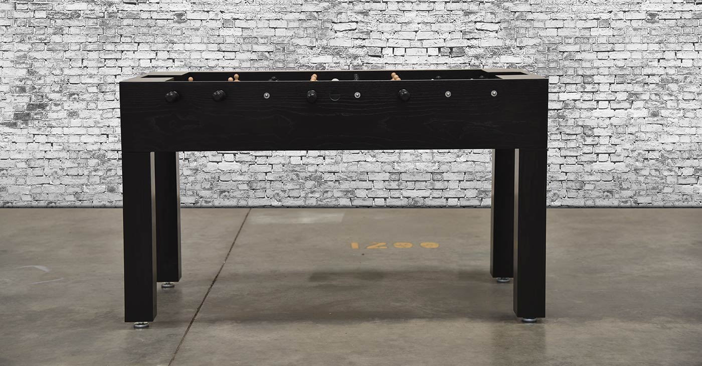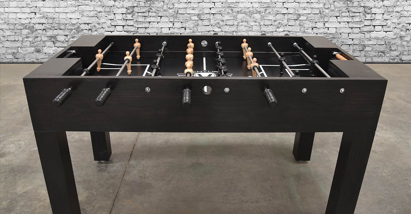 The Buckhead Foosball Table was introduced by Venture Game Tables to the public during April 2016’s High Point Furniture Market, one of the world’s premier furniture shows. The Buckhead has a sleek modern feel, with its simple Parson style legs, when finished in our black (as shown above), grey or white stain; but can take a traditional turn when finished in a Venture wood tone stain. The Buckhead Foosball is constructed of a solid 5/4” hardwood cabinet and legs. Then, a hand rubbed, Venture stain is applied to enhance the natural beauty of the wood and finished with a furniture lacquer for a smooth, wipe clean finish. Custom stains are available upon request.